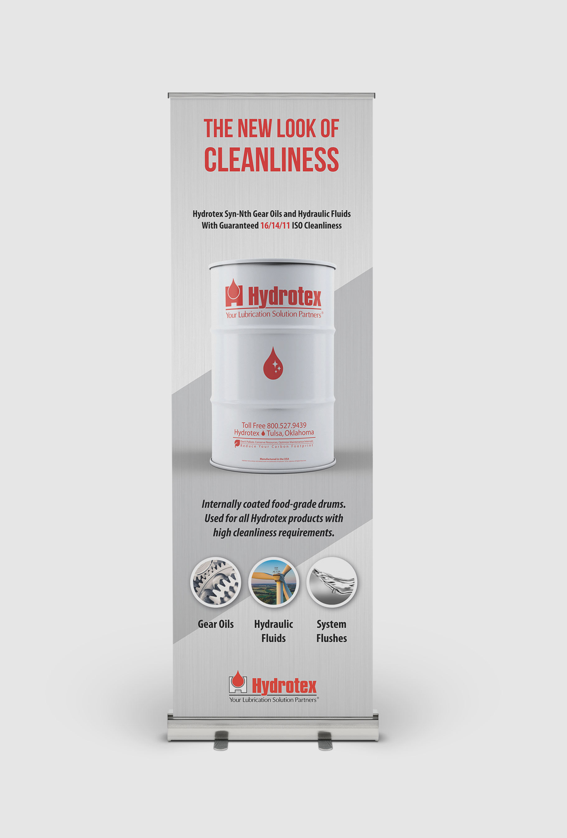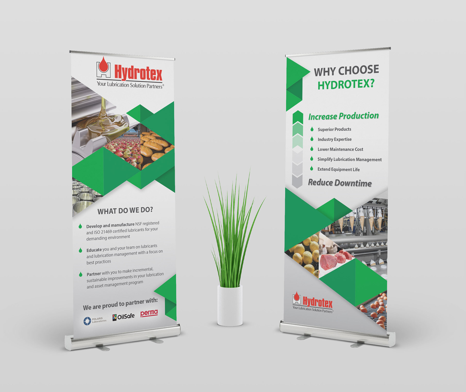 Various banners created for trade shows and display in public spaces at the Hydrotex headquarters.